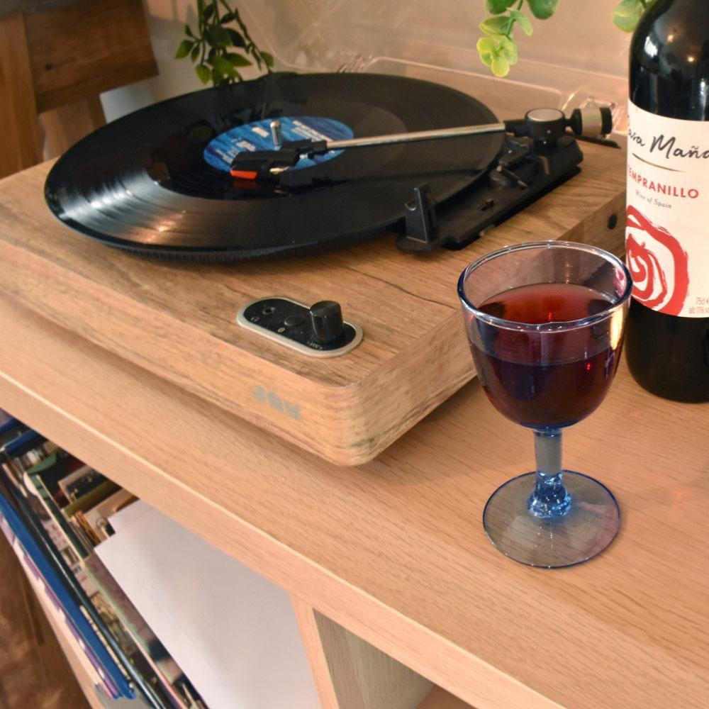 Single wine glass made from blue tinted recycled glass