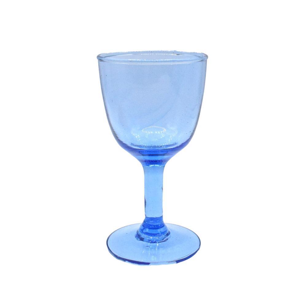 Single Wine Glass Recycled Glass Blue Tinted, 13cm height